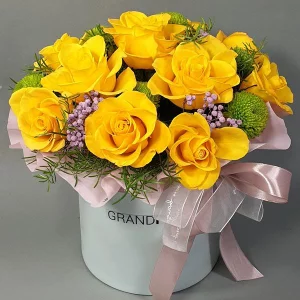 Любимой маме - шляпная коробка с розовыми и кремовыми кустовыми розамиот 7 074 руб. 7 293 руб.Купить