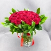 21  роза: роза красная (70см) - 21 шт., рускус (или салал) - 11 шт., упаковка, лента.