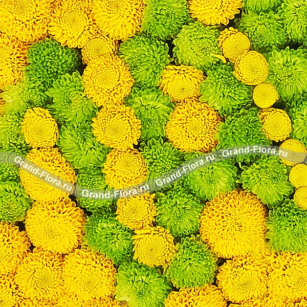 Стандартный: хризантема кустовая желтая (сантини) - 17 шт., хризантема кустовая зеленая - 9 шт., оазис.