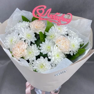 Маме – mini-композиция на оазисе из кустовой хризантемы