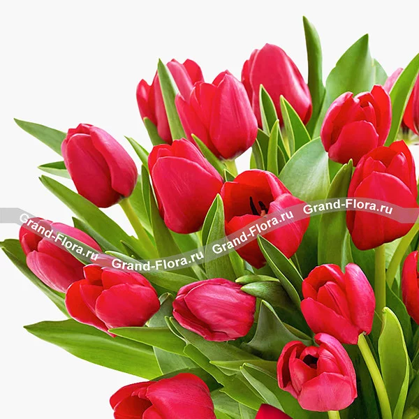 25 тюльпанов: тюльпаны красные - 25 шт, бант красный.