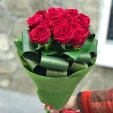 11 роз: роза красная - 11 шт. (Эквадор), лист аспидистры - 4 шт., упаковка, лента.