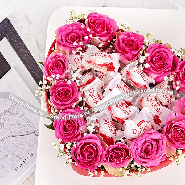 Твоя улыбка – сердце из розовых роз и раффаэлло