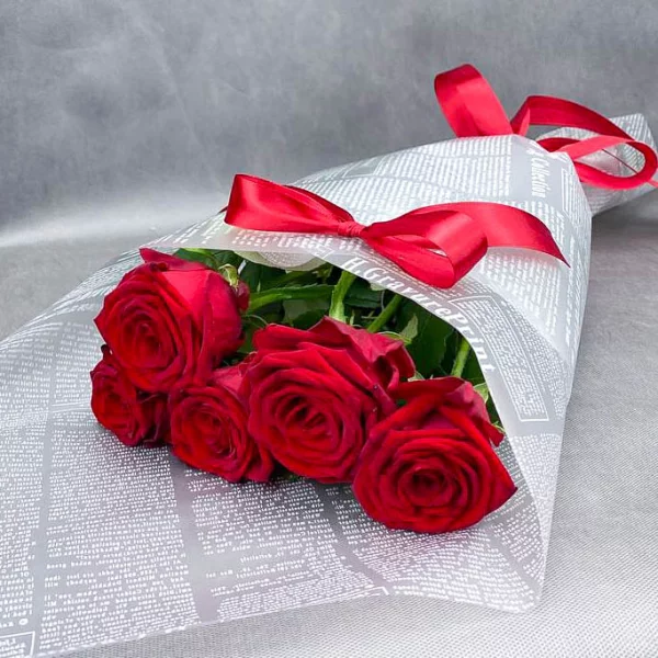 Розы красные 60 см - 5 шт., упаковка.